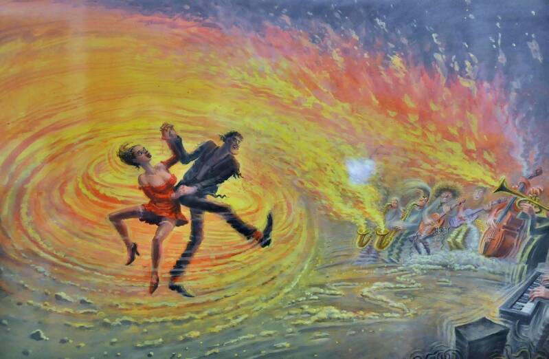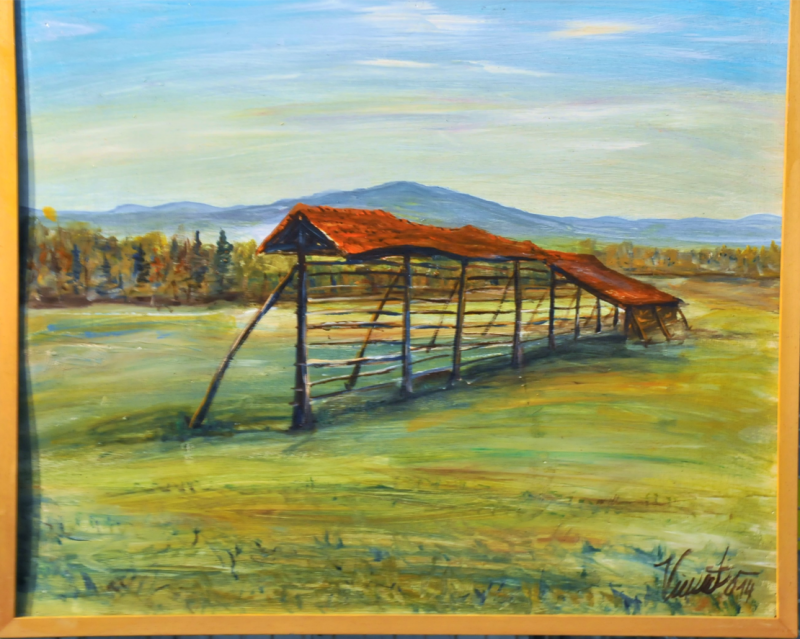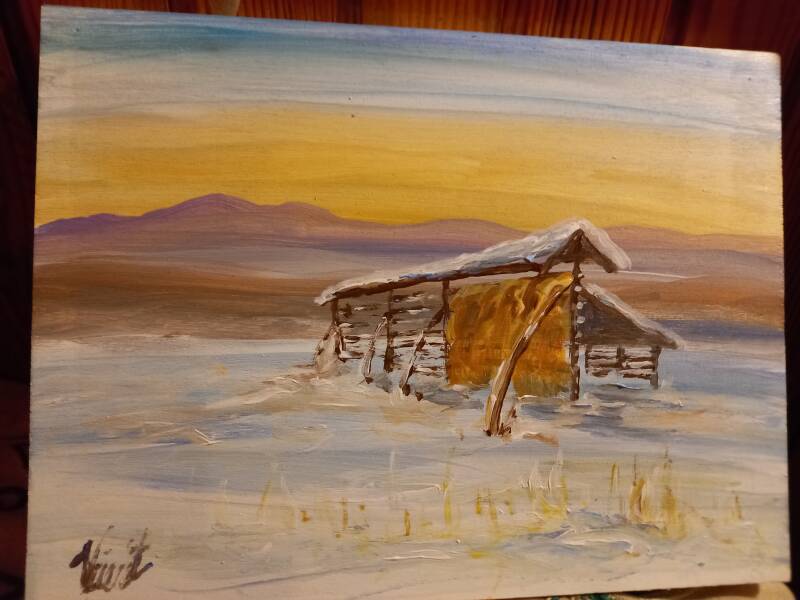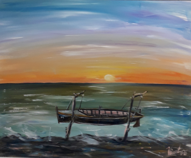 Slika je v velikosti 60×40, v tehniki akrila na lesonit.